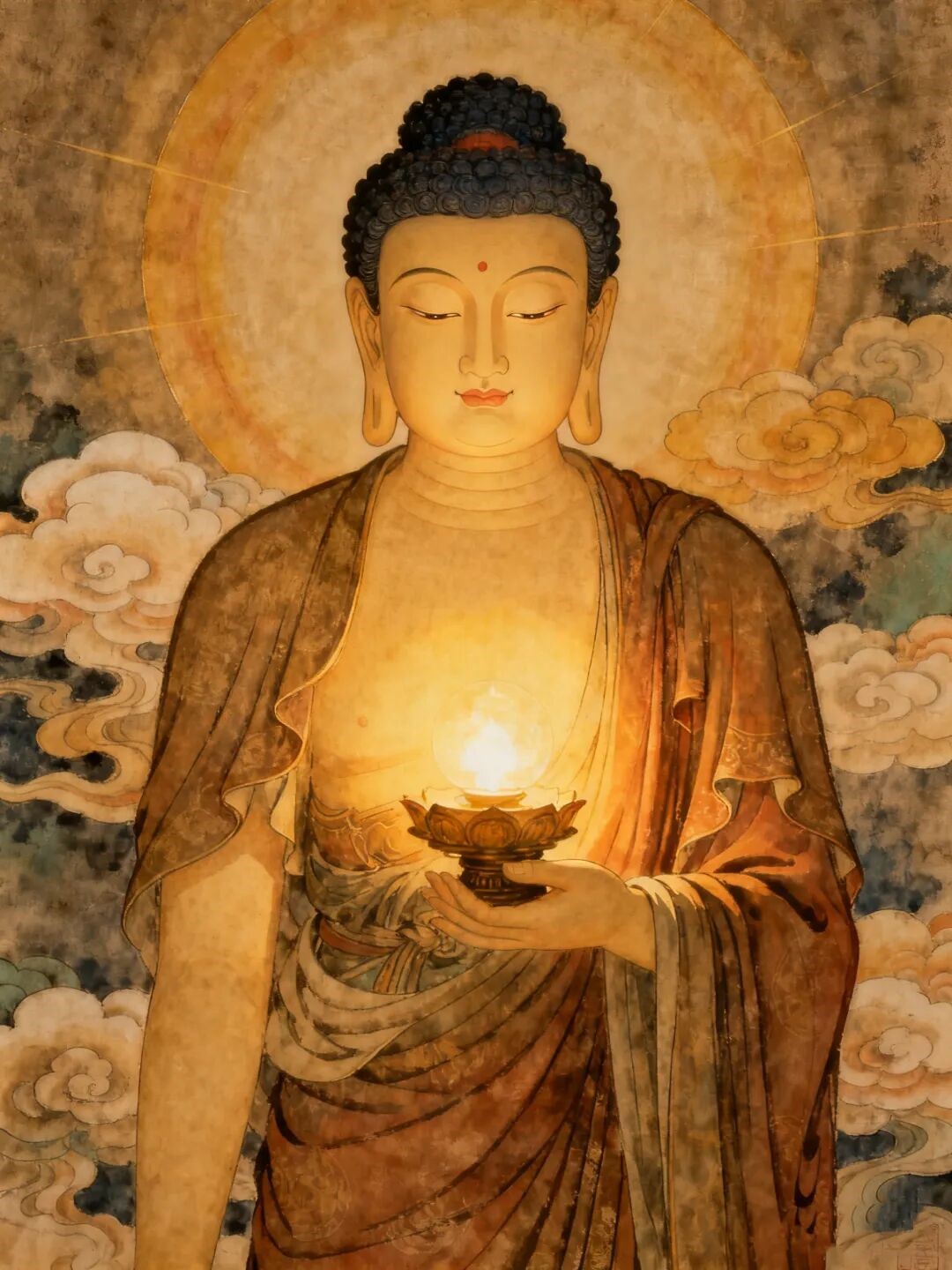 燃灯古佛的出生充满了神秘色彩,他的光芒不仅在出生之时照亮了整个房间,更在后来成为了引领众生走向解脱的明灯。他的故事激励着无数修行者,让人们相信只要心怀慈悲、坚定信念,就能够在修行的道路上取得成就。